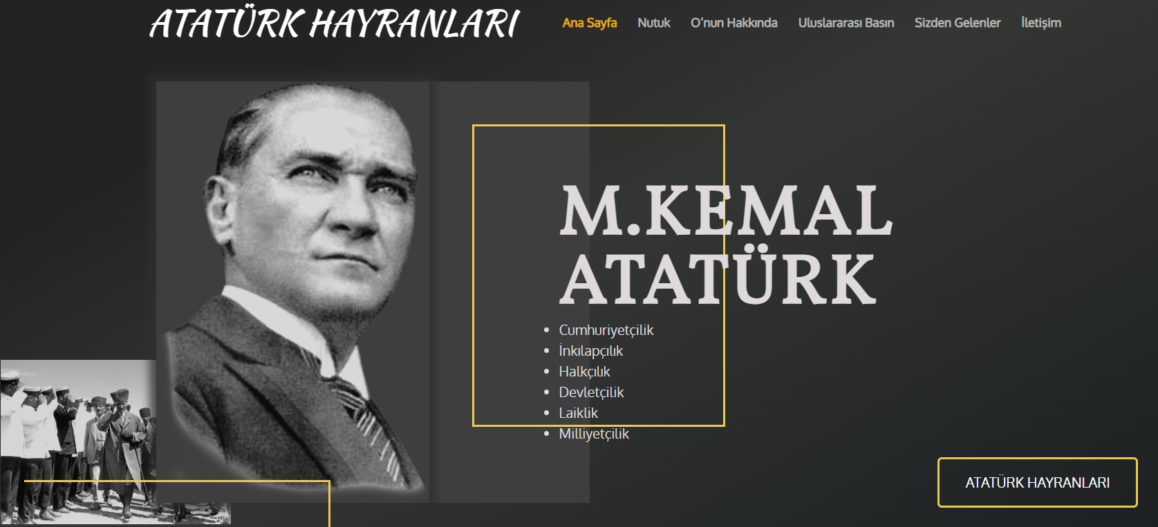 Hayranları.com olarak başlattığımız bu serüvene sizlerden gelen mesajlar doğrultusunda yön veriyoruz. Bizlere gelen taleplerin içerisinde Atatürk Hayran sitesinin ağırlıklı olarak istenmesinin haklı gururunu taşıyarak ataturk.hayranlari.com internet sitesini tam anlamıyla olmasa da yayına sokmuş bulunmaktayız.